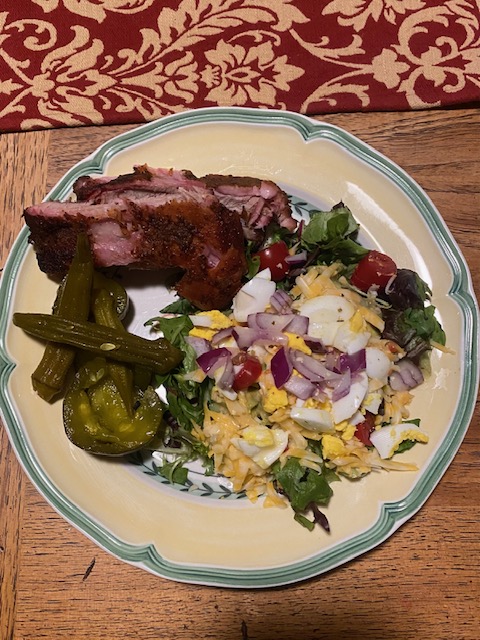 Hubs also smoked ribs this afternoon and they were so good. We paired it with his pickles and side salad.
