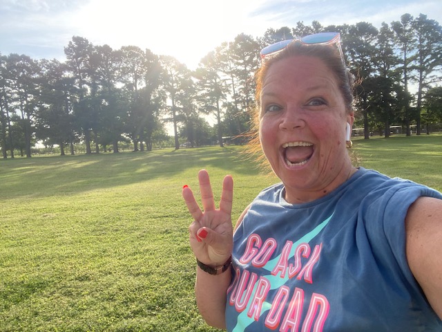 The alarm went off at 615 and I was so tempted to turn it off and just lay there. I don’t have many more mornings of “sleepin’ in”. I thought, it really won’t matter if I do bc I have volleyball practice tomorrow morning. I pushed those thoughts aside and I got out of bed and got ready. I only had a goal of walking a few times around the park and be done. Once I got to the park and started my playlist, I was pumped and on my way. I just kept going and even ran some of it. The sun was brightly shining and it was quite warm out but I did it. I was so proud of myself. Most summers I prepare myself for volleyball practices in advance, but I didn’t this summer. This was a great way to start my day and I am so thankful I did. Gotta get this almost 50 year old body back in shape.