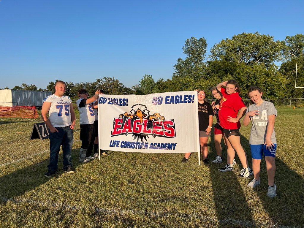 Boy, y’all! I am tired today. I feel like I can’t catch up with my sleep. Anyway, this was such a good week. They just keep flyin’ by. We lost and won some VB games. We won our Friday night football game. We celebrated birthdays, sweated a ton but most of all enjoyed each others company. Oh, and AG had a shirt made to wear for Gs games…super cute. It’s just been so great to see the kiddos enjoying each other and gettin’ along. We got to eat supper with some friends, that was long overdue.