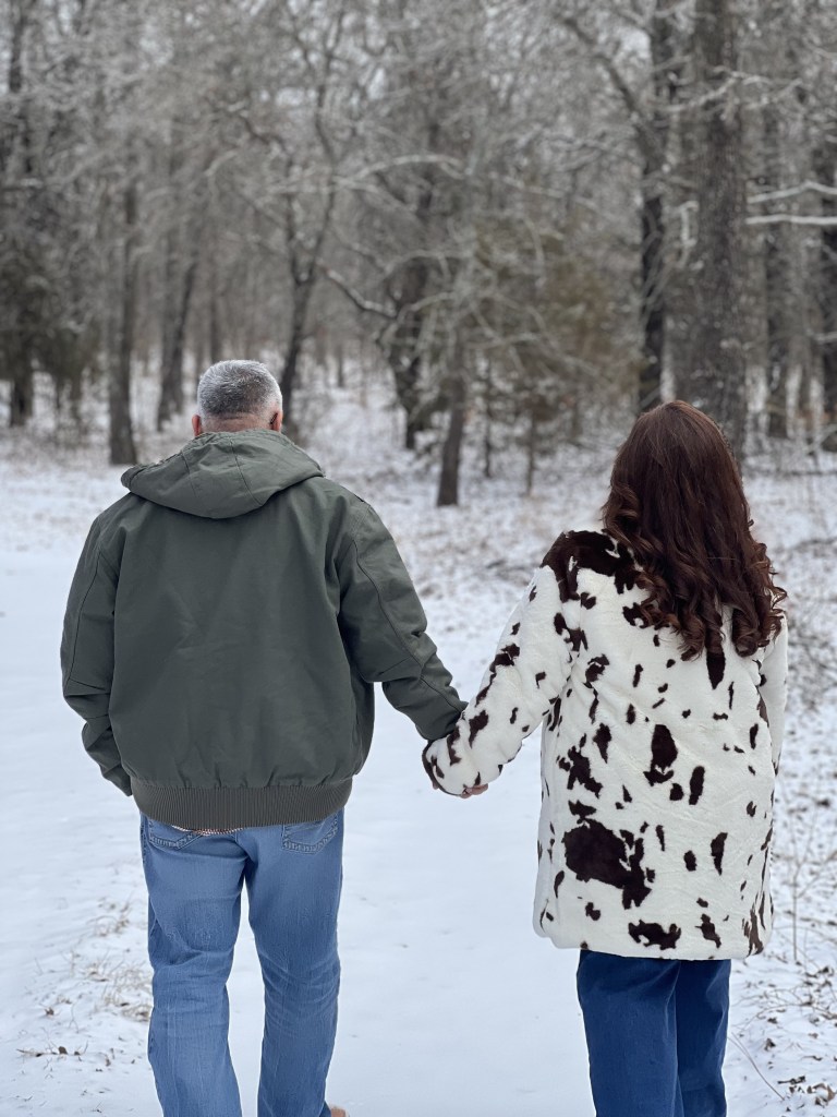 I have been able to make breakfast each morning and it’s been so nice. Don’t get me wrong, I love my job. I also love being able to be home too. I have been able to exercise, catch up on shows, laundry, and cleaning out cabinets. After sitting indoors all week, I talked the Hubs into walking outside with me for some photos of “Stopping by the woods on a snowy evening.” We all needed some fresh air but it didn’t last very long at all.