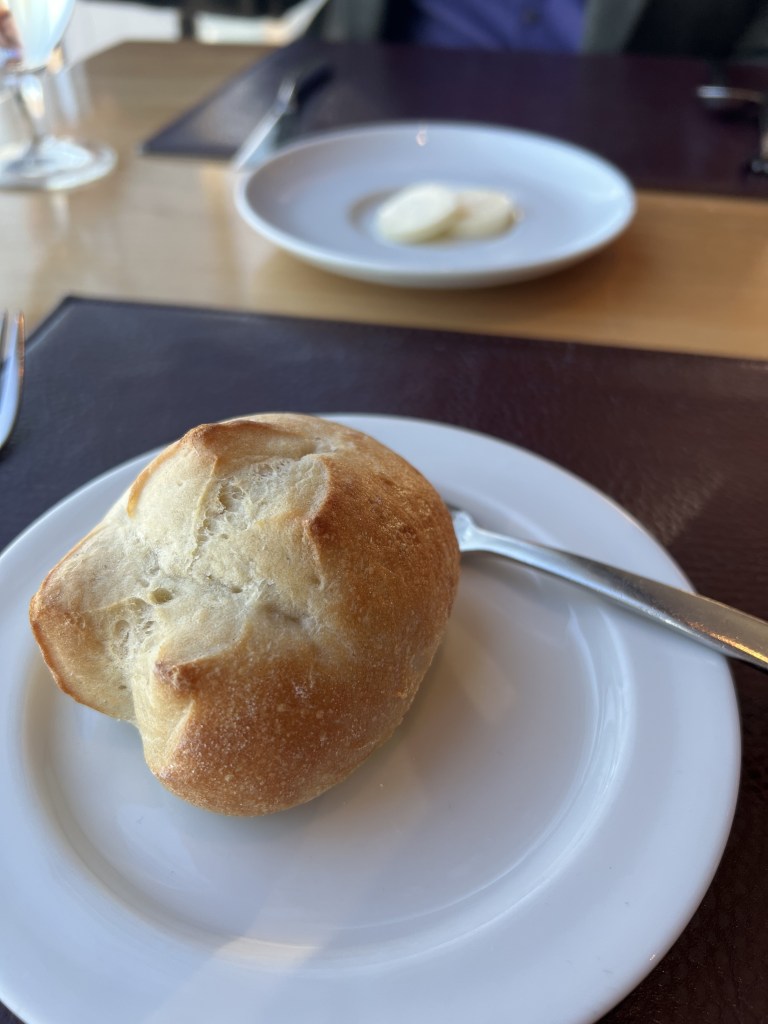 John took care of us for the night and did a great job. We started off with a zero proof drink. The Hubs got the Bubbles & Berries (Raspberry Strawberry Syrup, Lemon, Soda) and I got the Pomme Grenade (Pineapple Juice, Orange Juice, Jalapenos, Lime). They were both really good. We switched to water after that…can only have so much of fruity drinks. Next, a big roll with a pad of salty butter came out along with chefs compliments mozzarella ball to try. It was so tasty. We ordered the surf and turf for 2 and needless to say we couldn’t finish it. Plated for us was lobster tail, 2 large shrimp, melted butter, root veggies, a scallop, flash fried wonton wrapped mashed potatoes and broccolini. When you see these photos, you will understand. This food was beyond what you can imagine. The time and effort the chef puts into the presentation and delivery was so on point. I cannot put into words how divine this food was. It just melts in your mouth. I had to stop The Hubs from gnawin’ on the bone!! He mighta looked like a Neanderthal! We chose Vanilla Bean Crème Brûlée topped with seasonal berries. Y’all!!!!! I am not a creme brûlée lover, but this was absolutely tasty. The Hubs ordered a cappuccino and I ordered a cup of coffee to enjoy with our creme brûlée. When he brought us the bill, he also sat another chefs compliments in front of us…a dark chocolate orange truffle ball. Yum!