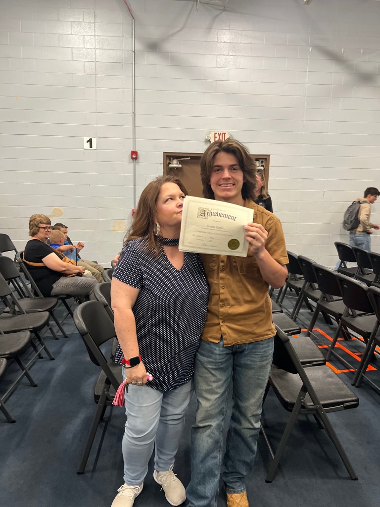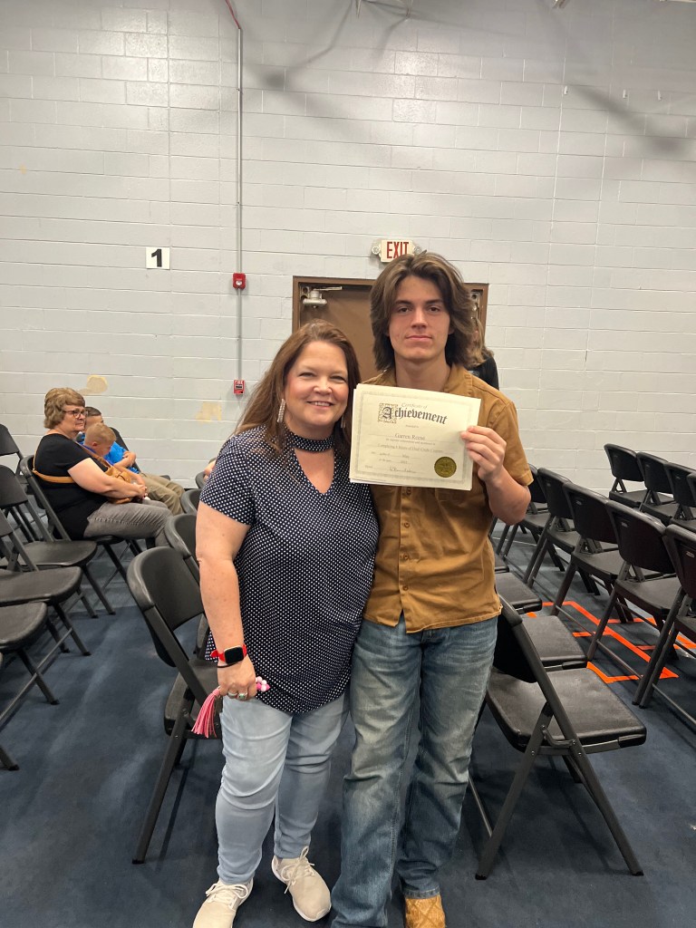 He received awards for Dual Credit hours, A/B Honor Roll and Coach gave the class most determined awards for finishing their dual credit course way ahead of time.