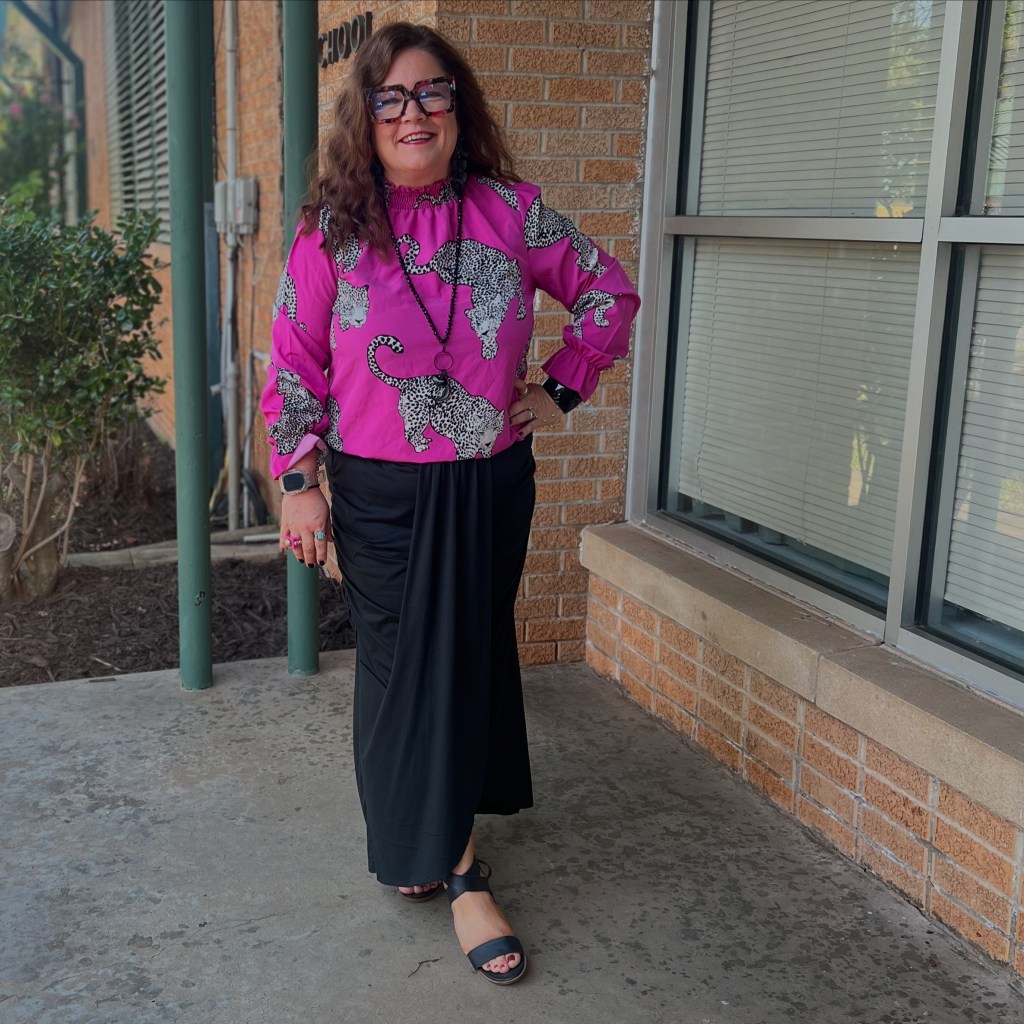 This was for volleyball photo day. Totally giving cheerleader vibes, a parent told me.