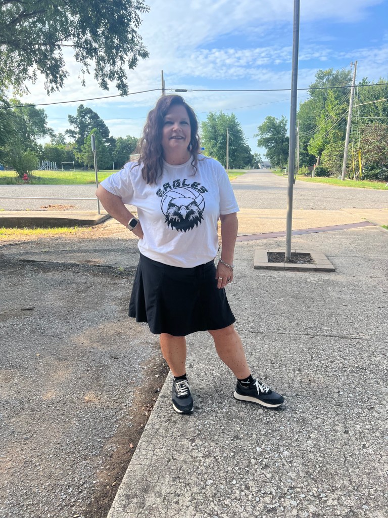 Monday-this shirt and skirt are from a thrift store. I paid .25 for each.