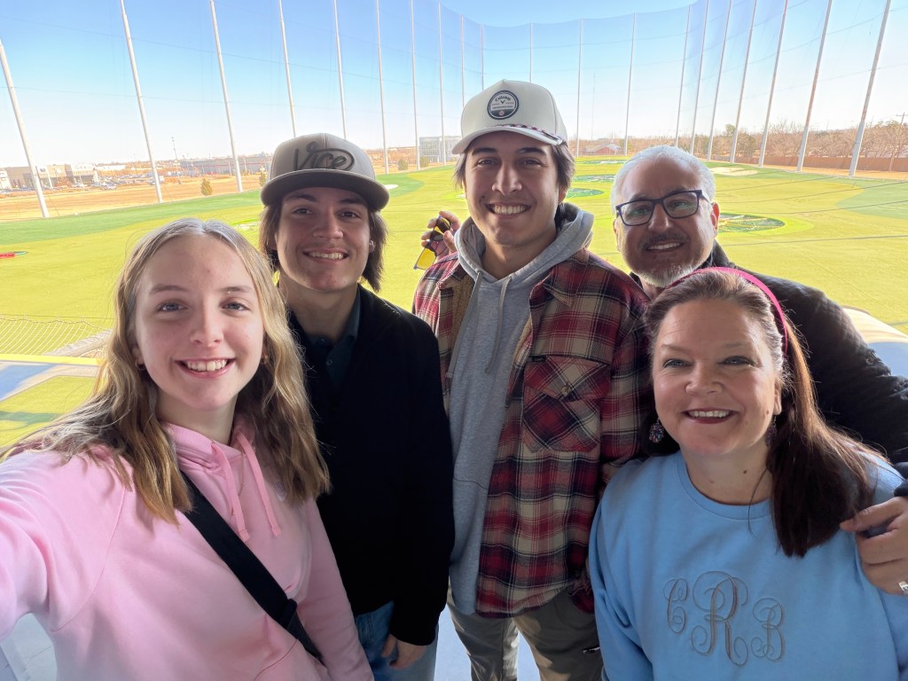 We had a good time celebrating. I am just thankful that he still wants to celebrate with us. We always have fun eating and playing silly games. AG was able to come as well. She fits right in with all our silliness…cuz she can be just as, if not more goofy, than us-lol. G wanted to do Top Golf, so Saturday we got up early and went. Madison had to work but joined us later at home.